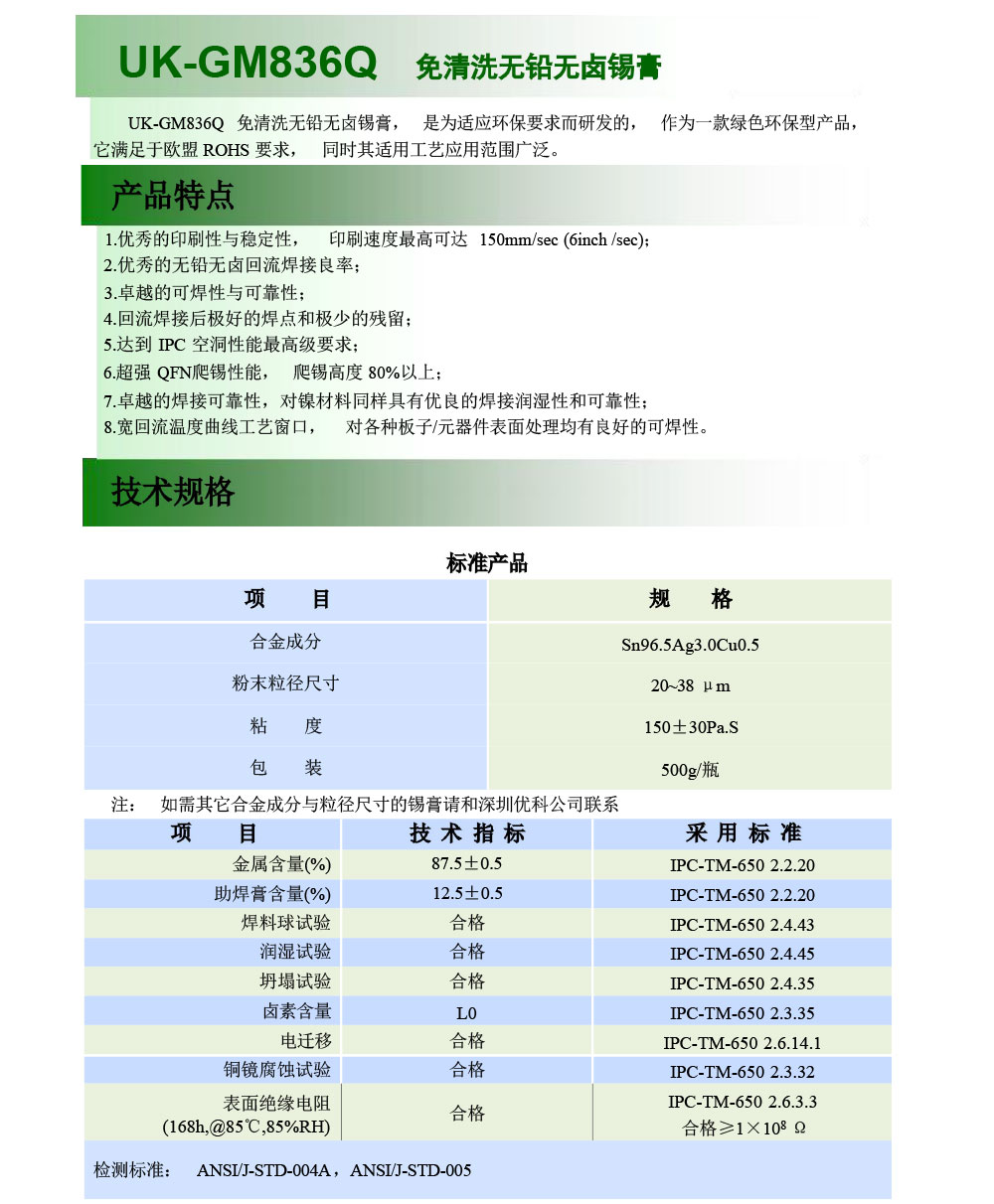 无铅高温锡膏UK-GM836Q - Sn96.5Ag3.0Cu0.5